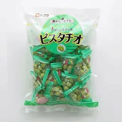 ピスタチオ、寒梅粉ミックス(米粉、澱粉)、砂糖、小麦粉、植物油、マーガリン、食塩、澱粉/膨張剤、着色料(黄4、青1、カロチノイド)、香料、(一部に小麦を含む)